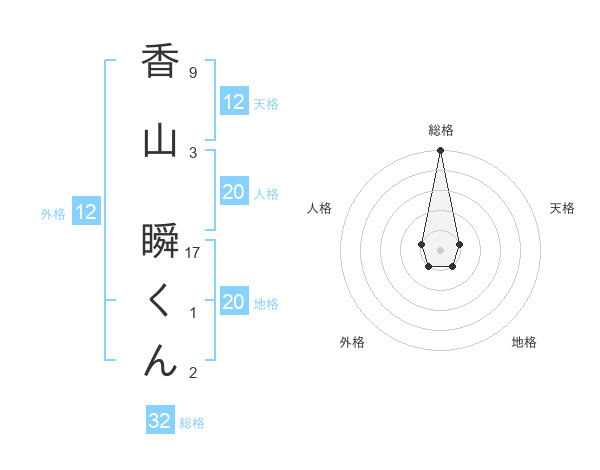 香山 瞬くんさんを姓名の画数から五運を鑑定