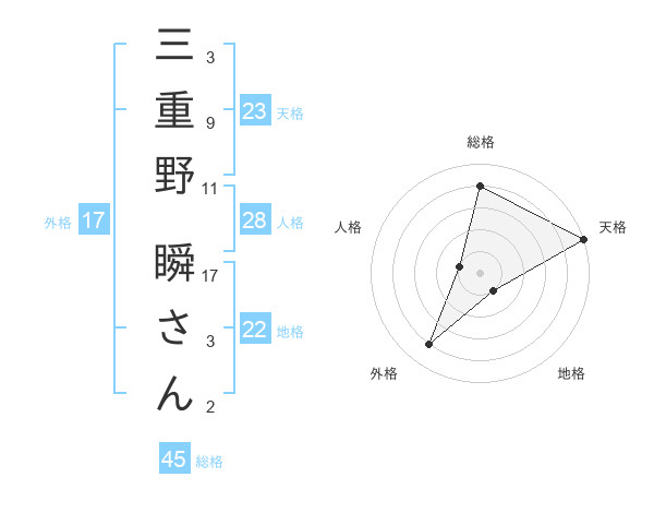 三重野 瞬さんさんを姓名の画数から五運を鑑定