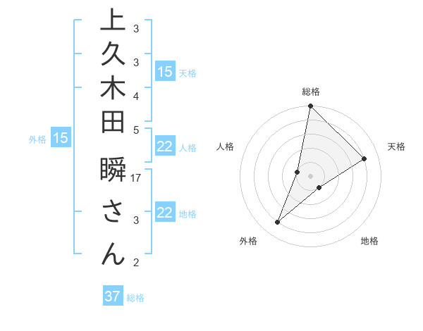 上久木田 瞬さんさんを姓名の画数から五運を鑑定