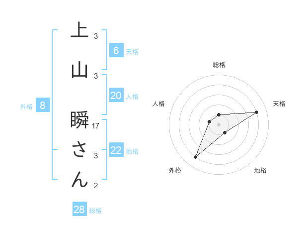 上山 瞬さんさんを姓名の画数から五運を鑑定
