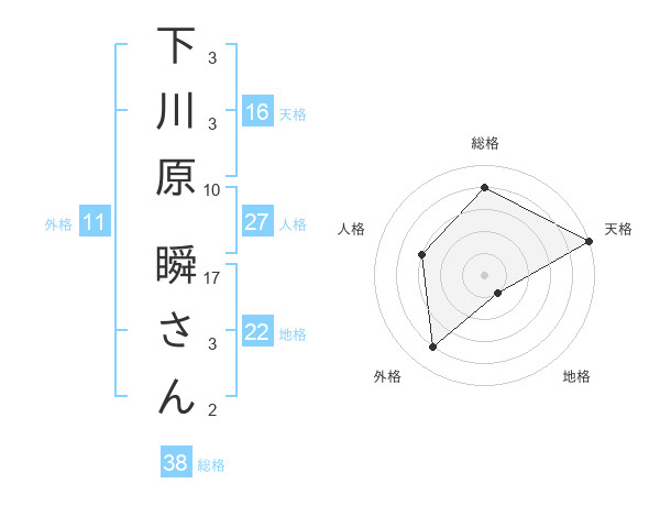 下川原 瞬さんさんの総格は38画の4点!