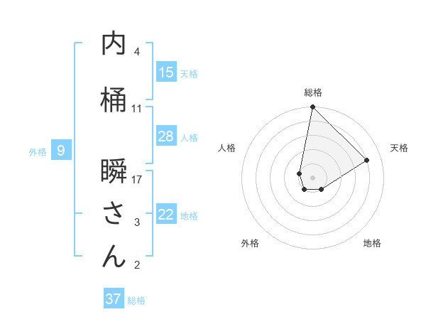 内桶 瞬さんさんを姓名の画数から五運を鑑定