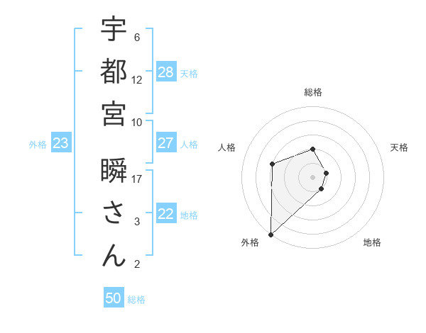 宇都宮 瞬さんさんを姓名の画数から五運を鑑定
