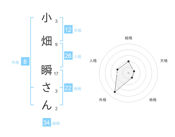 小畑 瞬さんさんの天格は12画の1点!