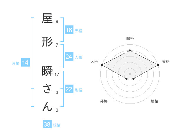屋形 瞬さんさんの総格は38画の4点!