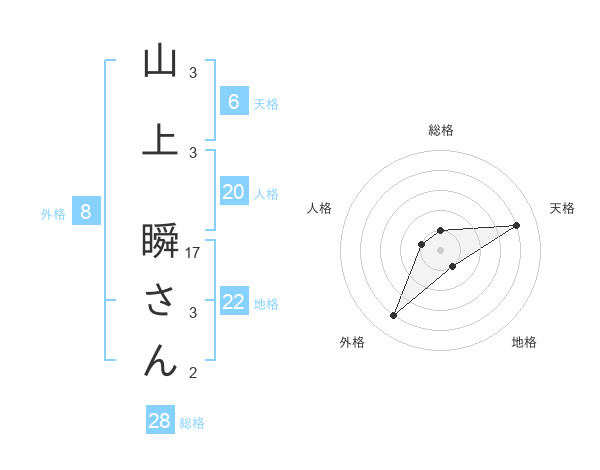 山上 瞬さんさんを姓名の画数から五運を鑑定