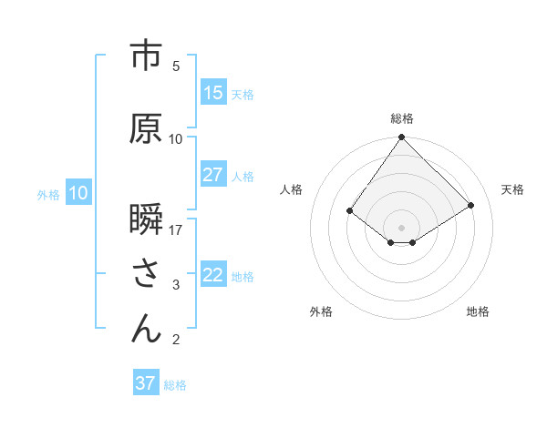 市原 瞬さんさんの総格は37画の5点!