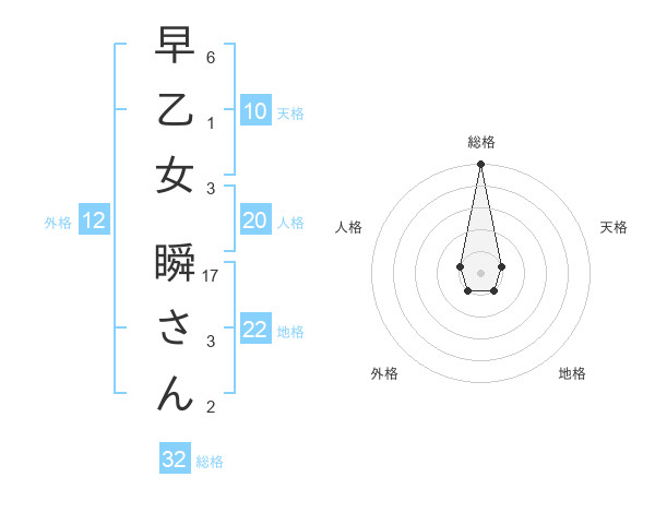 早乙女 瞬さんさんを姓名の画数から五運を鑑定
