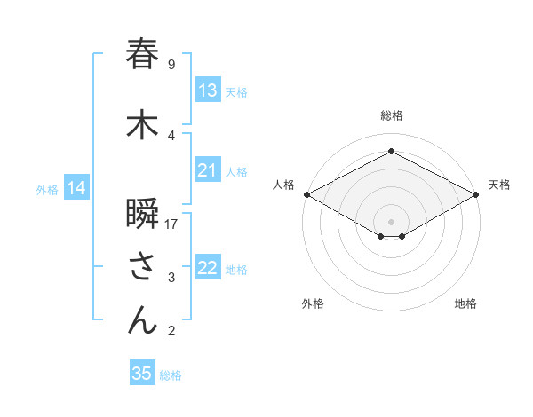 春木 瞬さんさんを姓名の画数から五運を鑑定