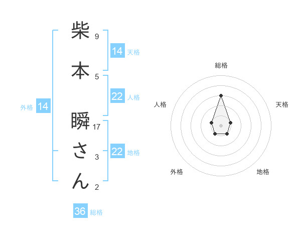 柴本 瞬さんさんを姓名の画数から五運を鑑定