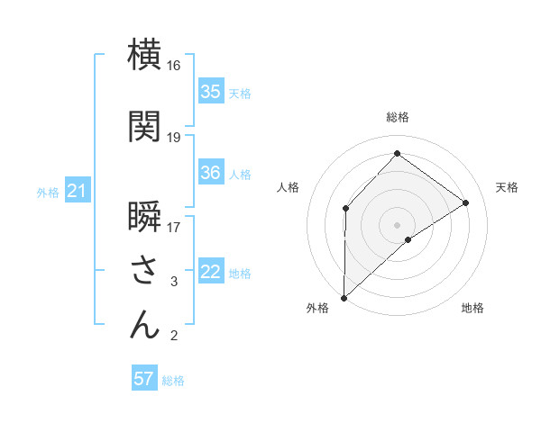 横関 瞬さんさんの外格は21画の5点