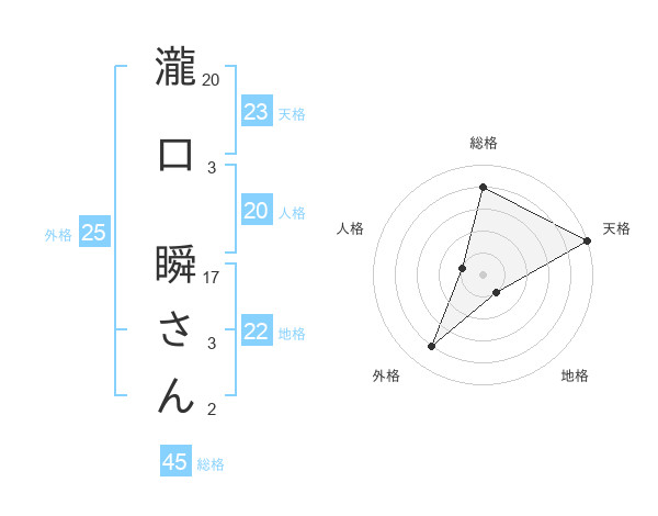 瀧口 瞬さんさんを姓名の画数から五運を鑑定