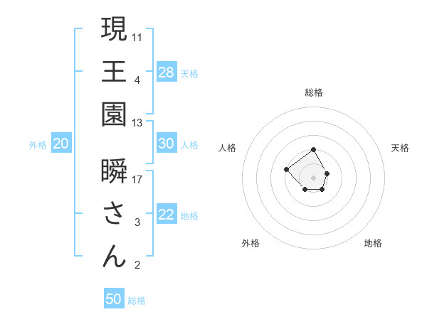 現王園 瞬さんさんの総格は50画の2点!
