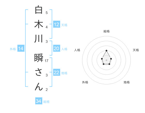 白木川 瞬さんさんを姓名の画数から五運を鑑定