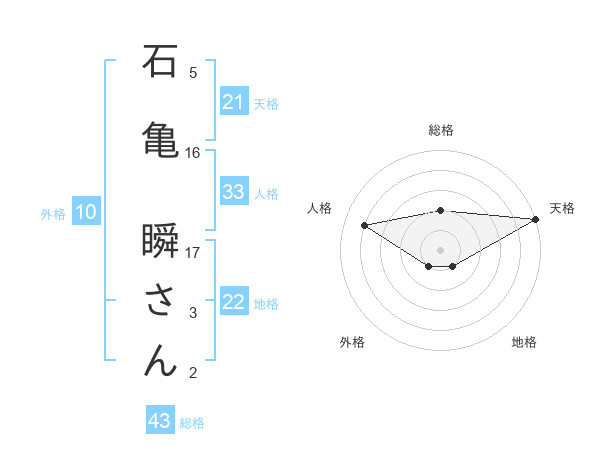 石亀 瞬さんさんを姓名の画数から五運を鑑定