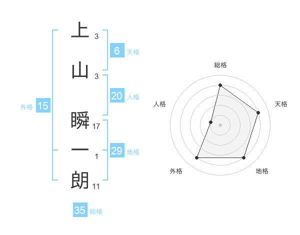 上山 瞬一朗さんを姓名の画数から五運を鑑定