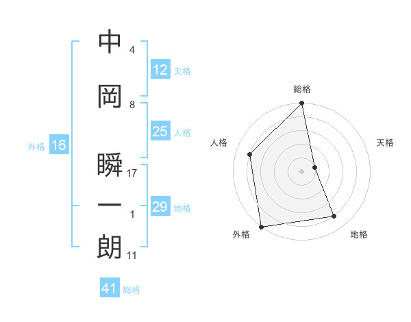 中岡 瞬一朗さんを姓名の画数から五運を鑑定