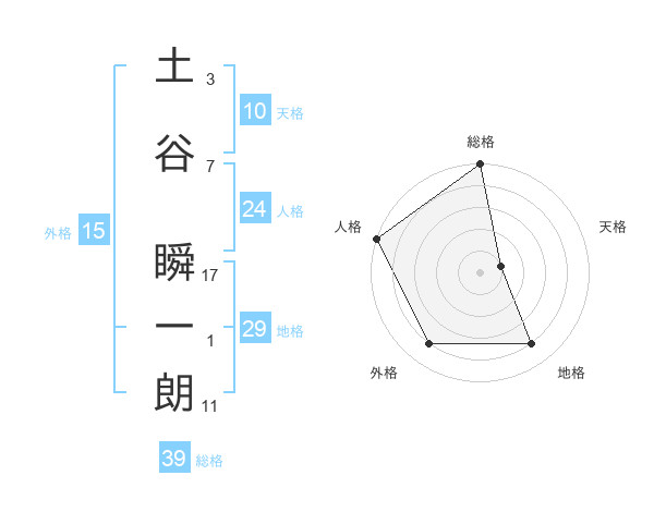 土谷 瞬一朗さんの総格は39画の5点!