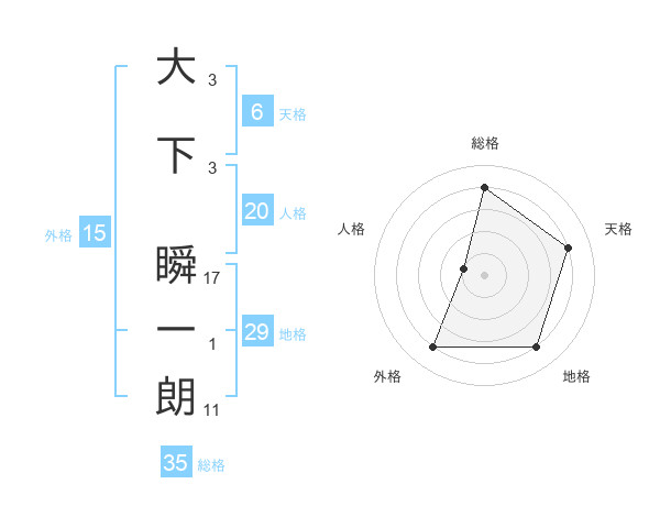 大下 瞬一朗さんを姓名の画数から五運を鑑定