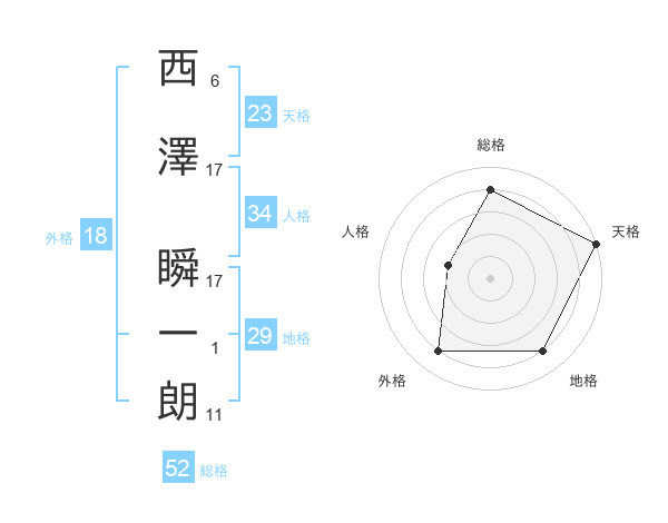 西澤 瞬一朗さんを姓名の画数から五運を鑑定