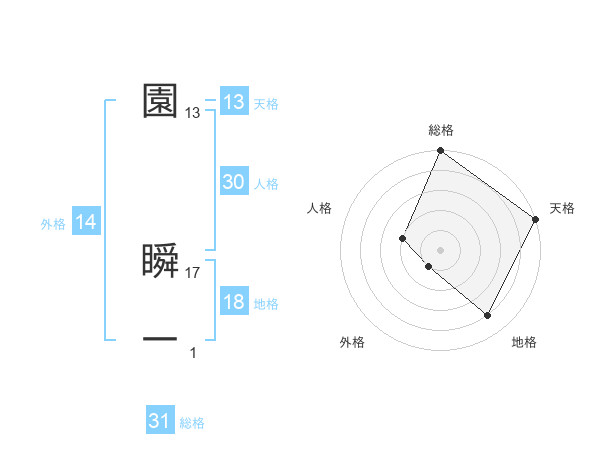 園 瞬一さんの外格は14画の1点!