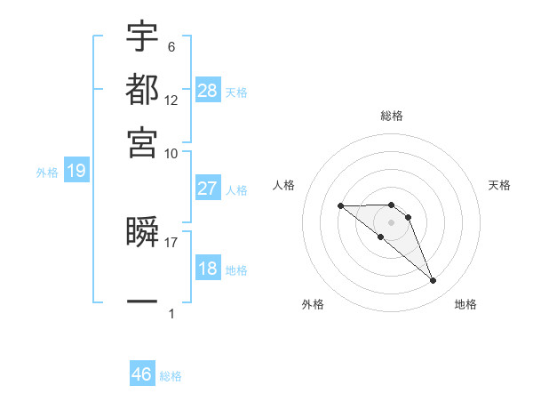 宇都宮 瞬一さんを姓名の画数から五運を鑑定
