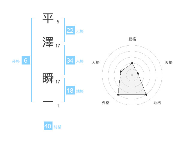平澤 瞬一さんを姓名の画数から五運を鑑定