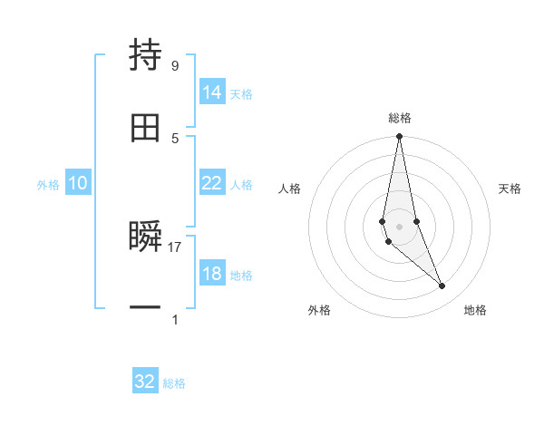 持田 瞬一さんの総格は32画の5点!