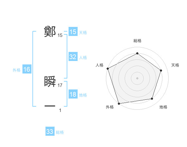 鄭 瞬一さんの総格は33画の4点!