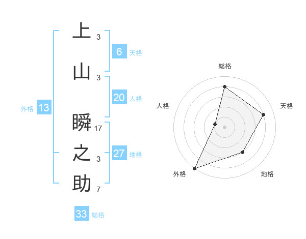 上山 瞬之助さんの総格は33画の4点!