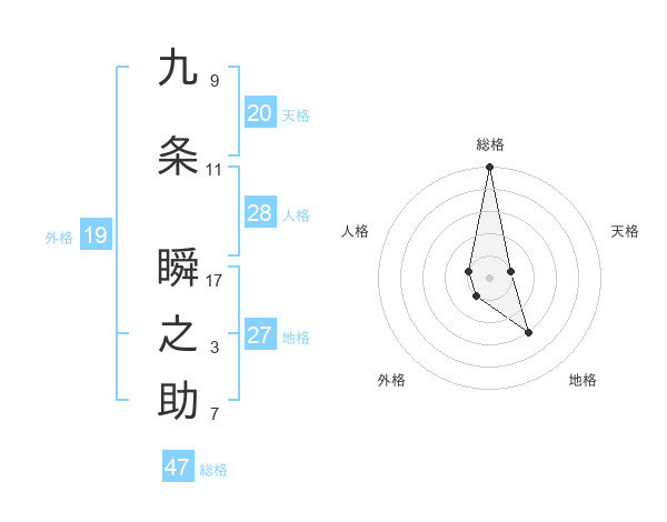 九条 瞬之助さんを姓名の画数から五運を鑑定