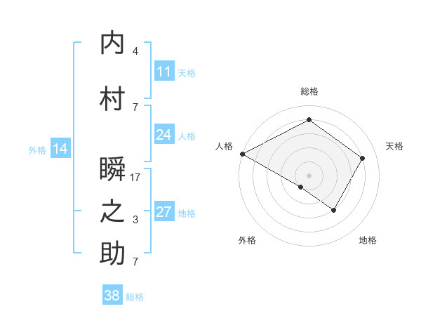 内村 瞬之助さんの総格は38画の4点!