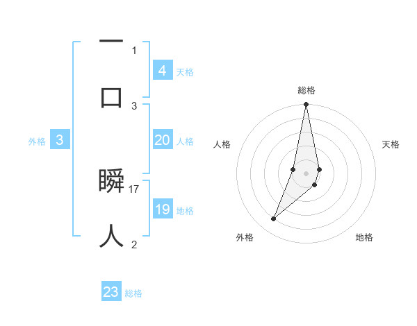 一口 瞬人さんの総格は23画の5点!