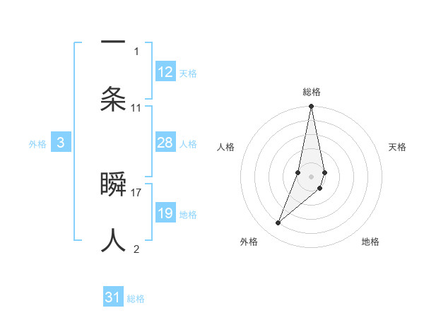 一条 瞬人さんを姓名の画数から五運を鑑定