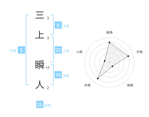 三上 瞬人さんを姓名の画数から五運を鑑定