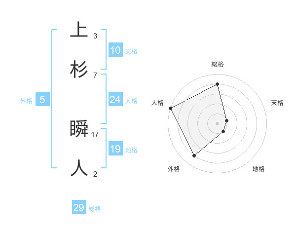 上杉 瞬人さんを姓名の画数から五運を鑑定
