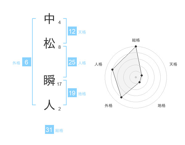 中松 瞬人さんを姓名の画数から五運を鑑定