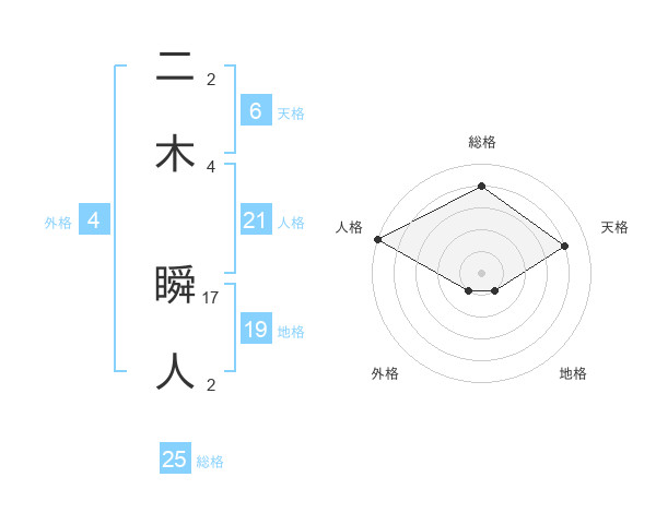 二木 瞬人さんの天格は6画の4点!