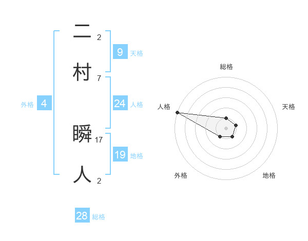 二村 瞬人さんを姓名の画数から五運を鑑定