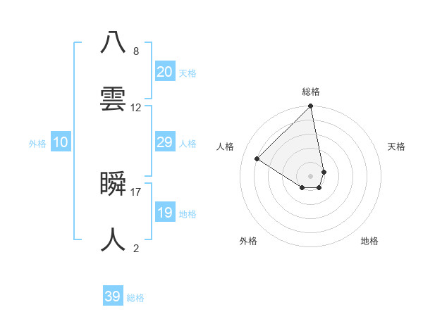 八雲 瞬人さんを姓名の画数から五運を鑑定