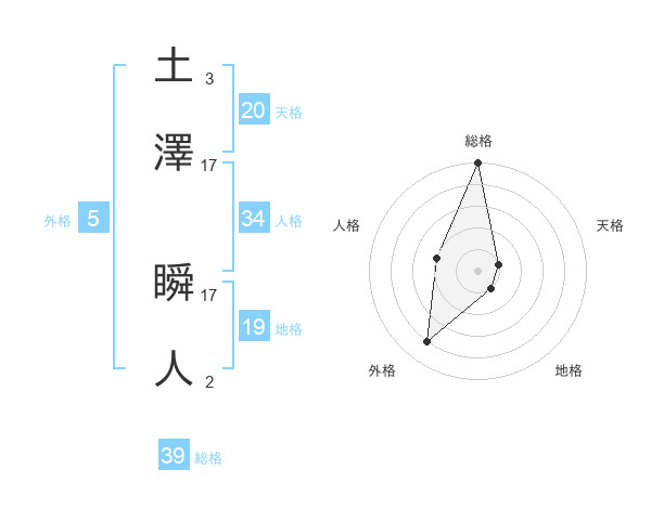 土澤 瞬人さんを姓名の画数から五運を鑑定
