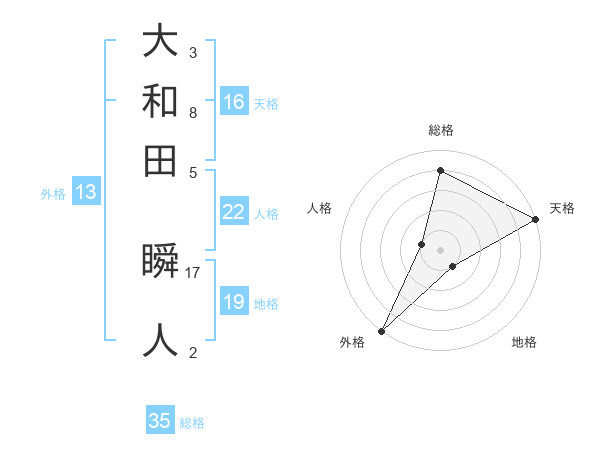 大和田 瞬人さんを姓名の画数から五運を鑑定