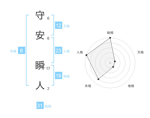 守安 瞬人さんの天格は12画の1点!