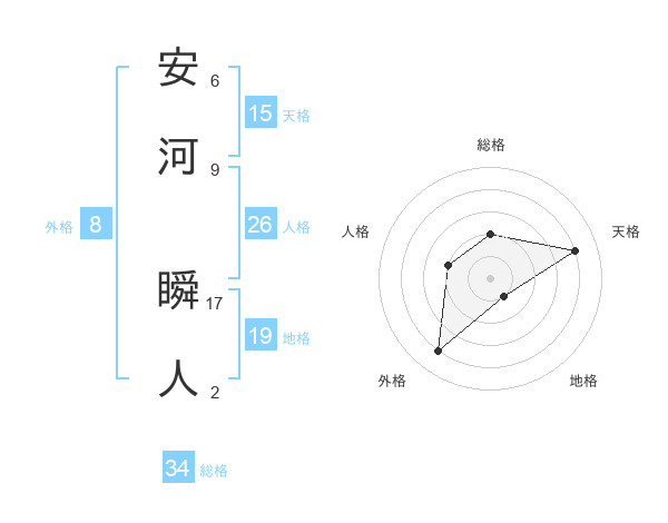 安河 瞬人さんの天格は15画の4点!