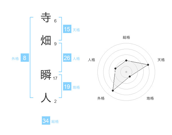 寺畑 瞬人さんを姓名の画数から五運を鑑定