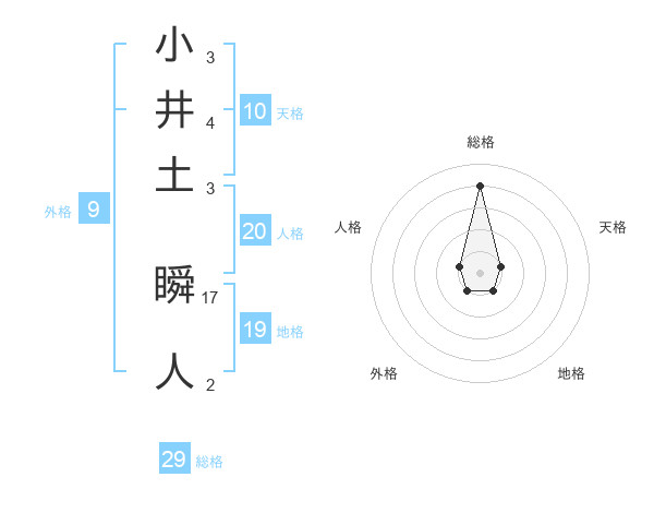 小井土 瞬人さんの総格は29画の4点!