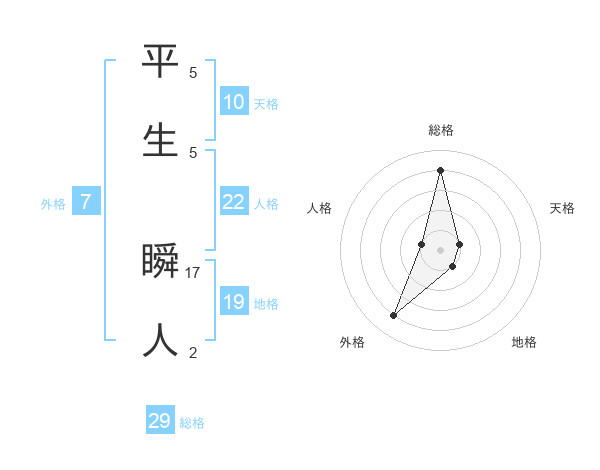 平生 瞬人さんを姓名の画数から五運を鑑定
