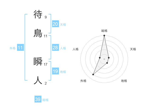 待鳥 瞬人さんの外格は11画の4点!