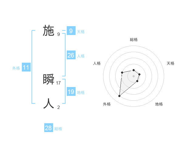 施 瞬人さんの外格は11画の4点!