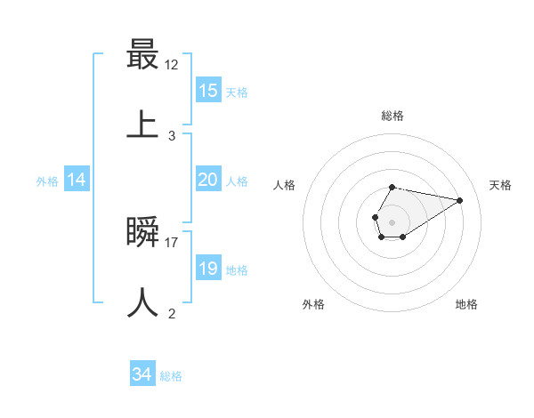 最上 瞬人さんを姓名の画数から五運を鑑定
